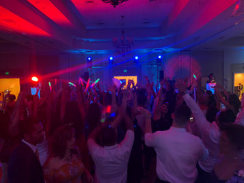 Let us help you create a beautiful space with subtle touches of lighting in all of the right places. When it's time to party we can now lower the overhead lighting, raise the energy level and make your room pop with color. We can customize your room's lighting design to fit your color palette and budget. We can also go from a simple elegant one wall of up-lighting to a more elaborate light show with full room DMX controlled up-lights, dance floor effects lighting, totems with pre-programmed moving spotlights all synced to music.